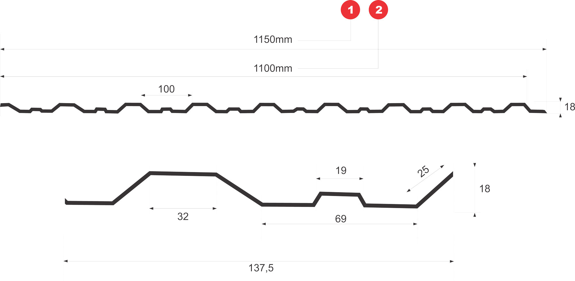 Tabla cutată LUDWIK T18 este produsă cu o grosime nominală între 0,3 - 0,5 mm, în funcție de cerințele construcției lungimea standard a modulelor este cuprinsă între 0,500 m și 13,5 m. Executarea modulelor cu lungimi diferite de cele standard se va face după consultarea prealabilă a consultantului tehnic LUDWIK.